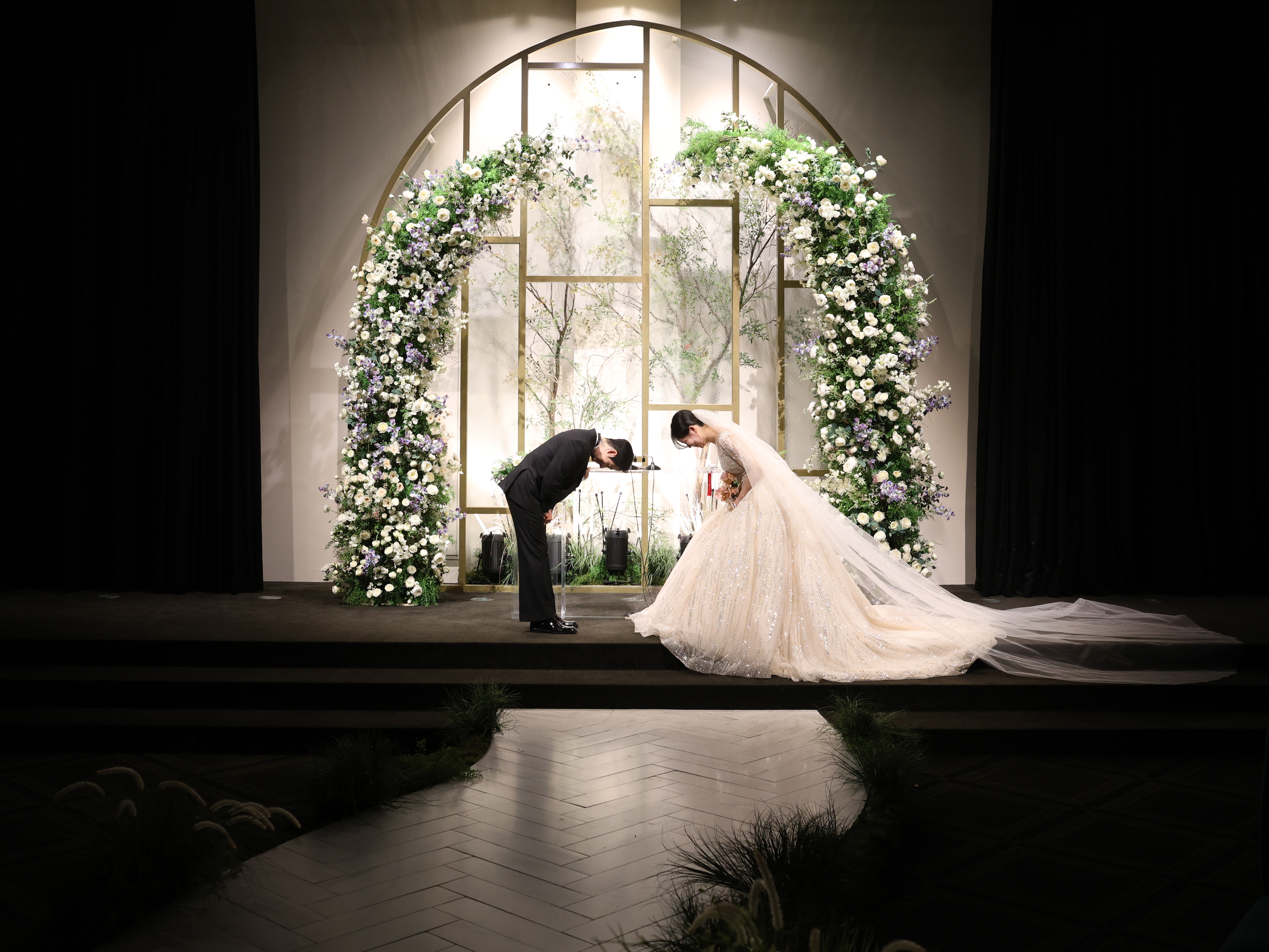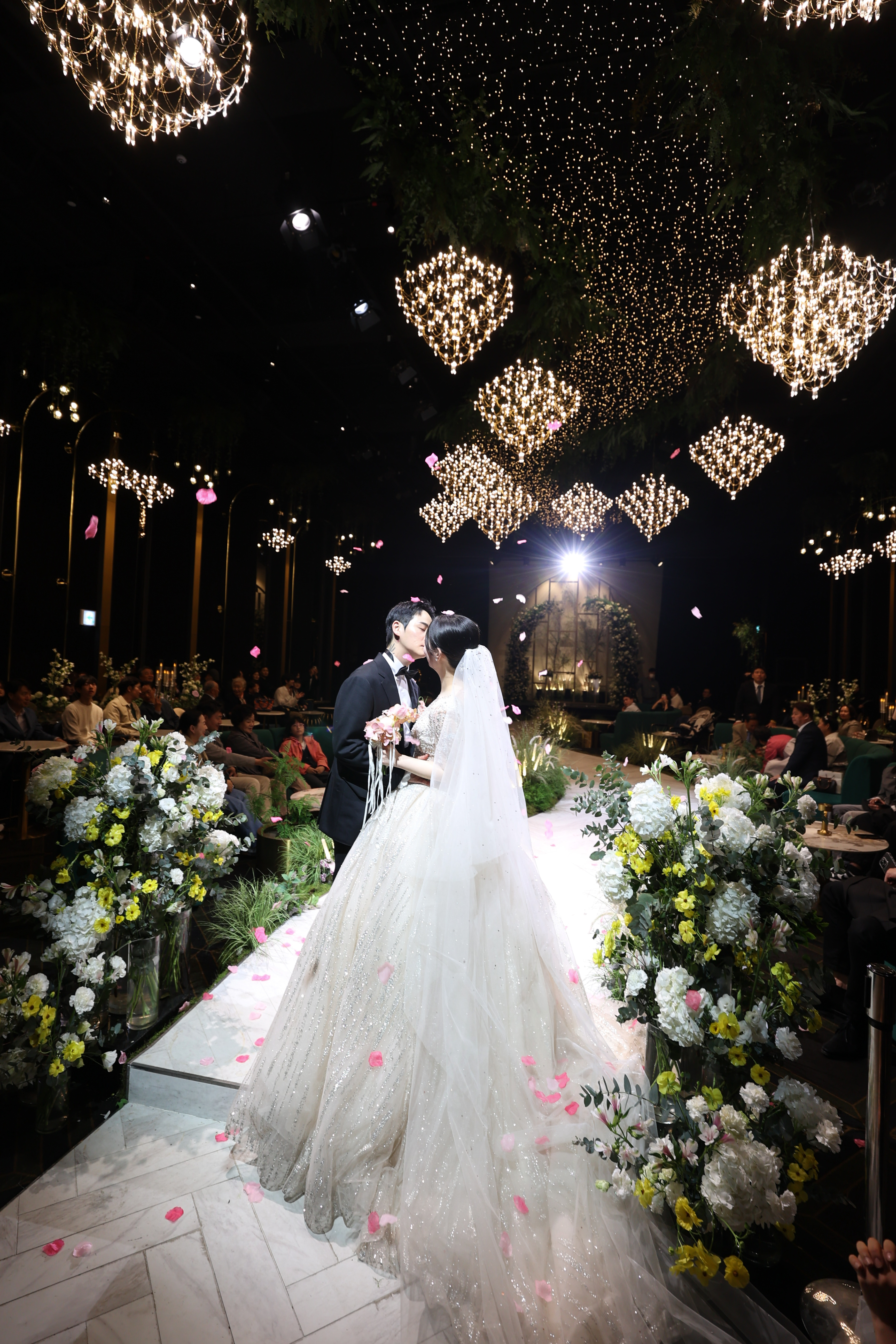 신랑 신부의 스타일도 정말 멋졌고, 드레스와 턱시도가 이 공간과 완벽하게 어울렸답니다.