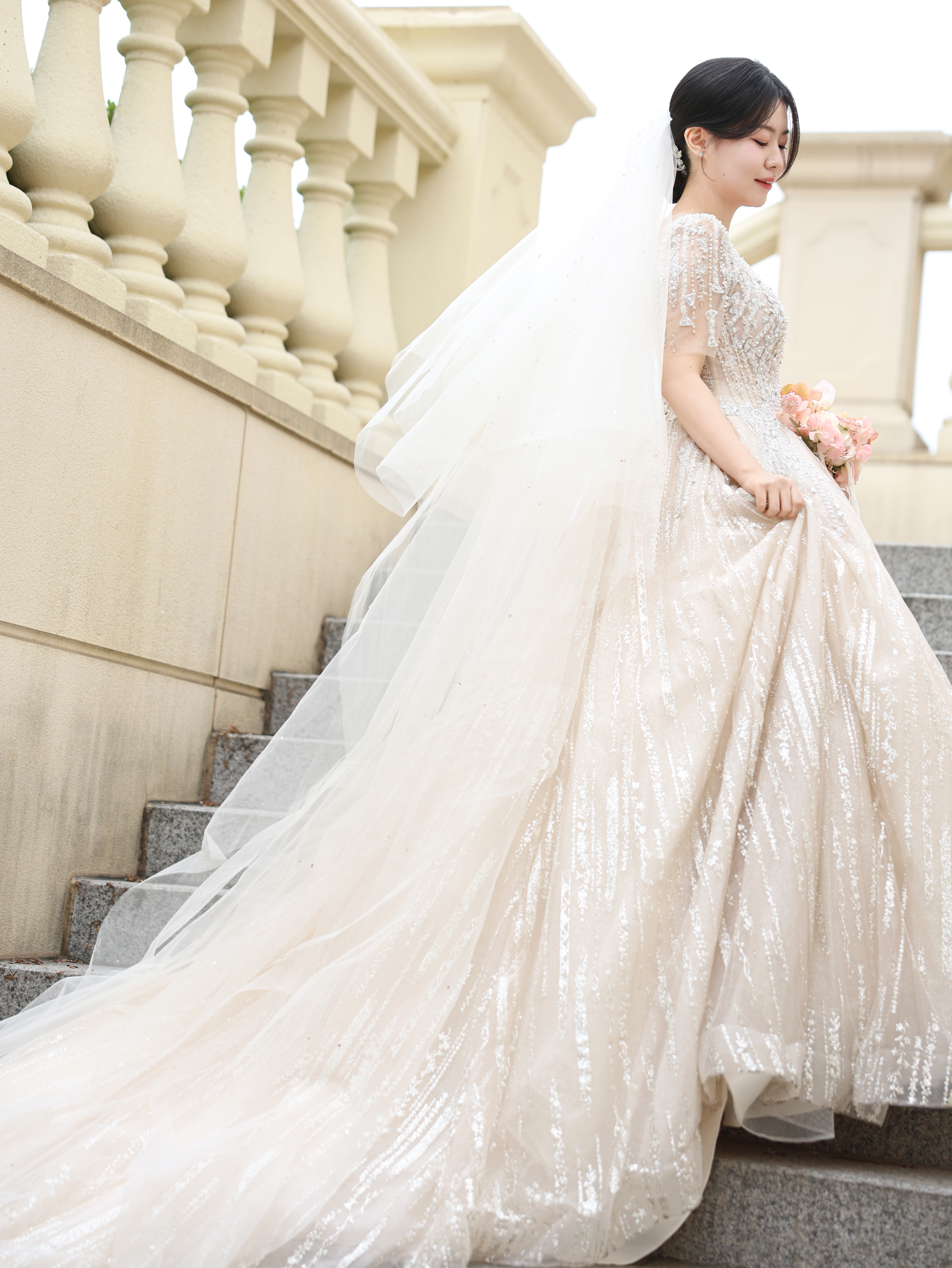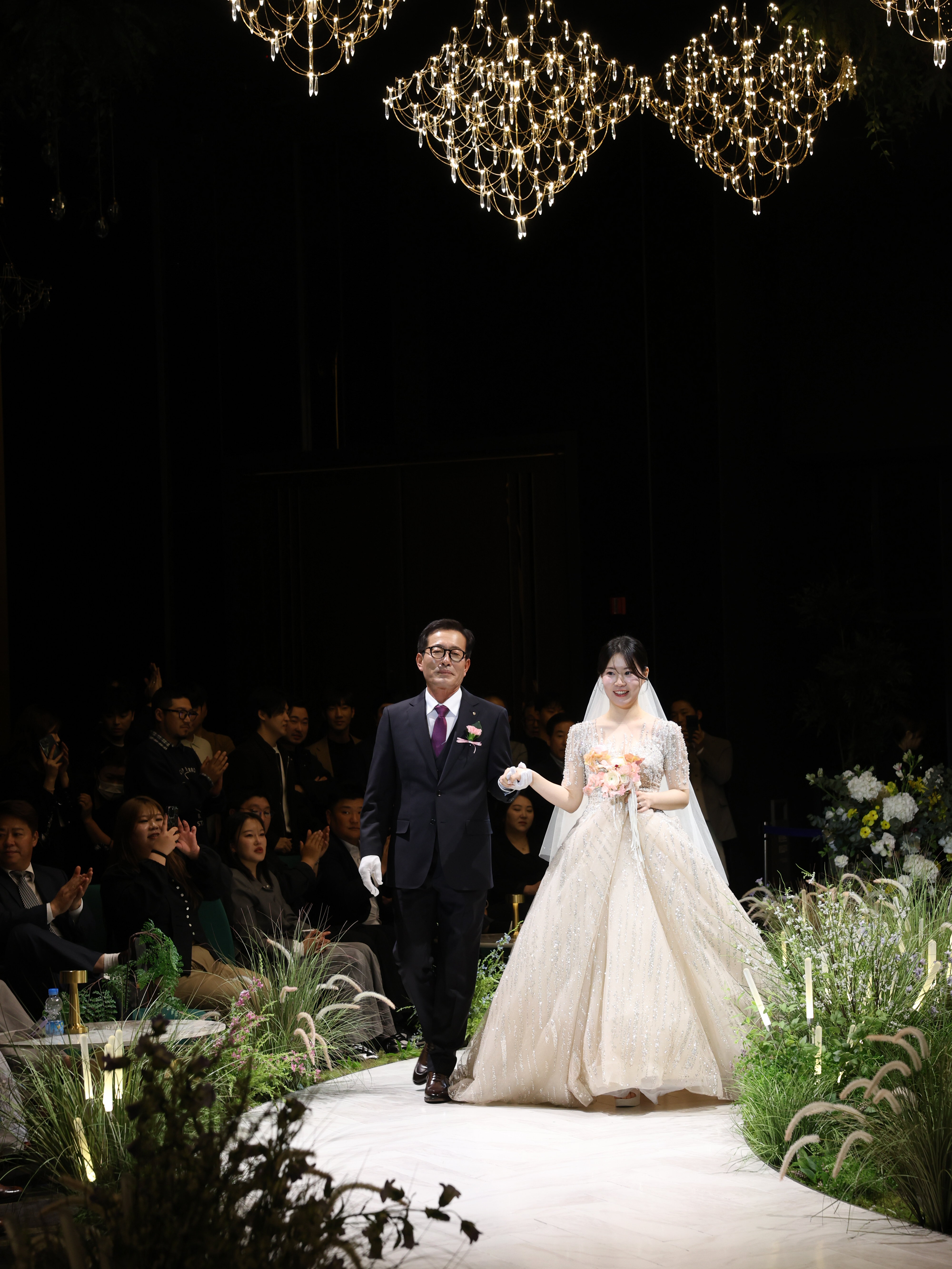벚꽃이 날리는 가운데 신부의 드레스 자락이 흩날리는 장면은 정말 영화 같았어요.