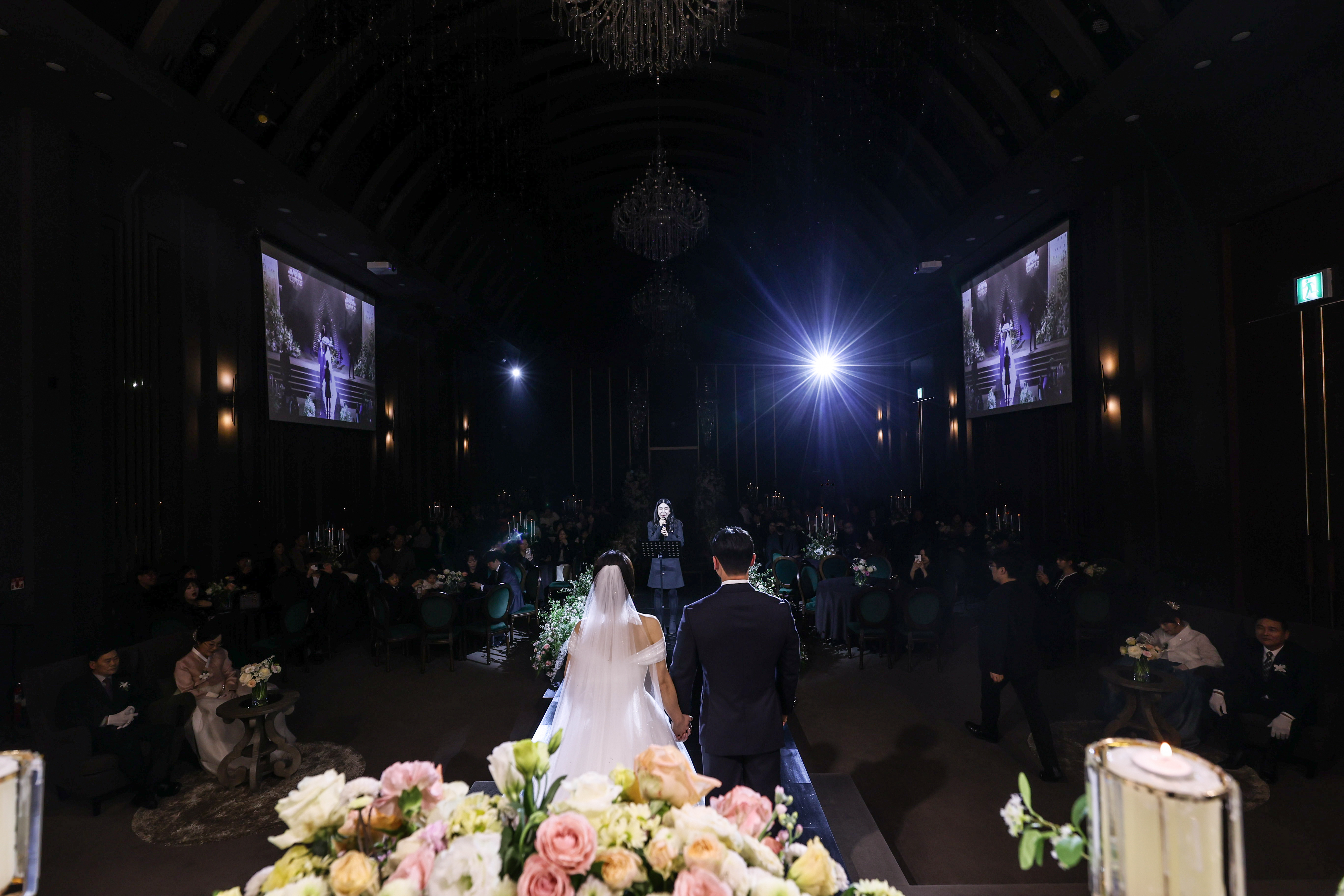 홀에 들어서는 순간 느껴지는 웅장함과 안정적인 구조 덕분에 예식 자체가 굉장히 단정하고 클래식한 느낌이었어요. 화려하다기보다는, 공간이 주는 무게감이 분명한 홀이라 예식의 흐름을 방해하지 않는 기록이 중요하겠다고 느꼈어요.