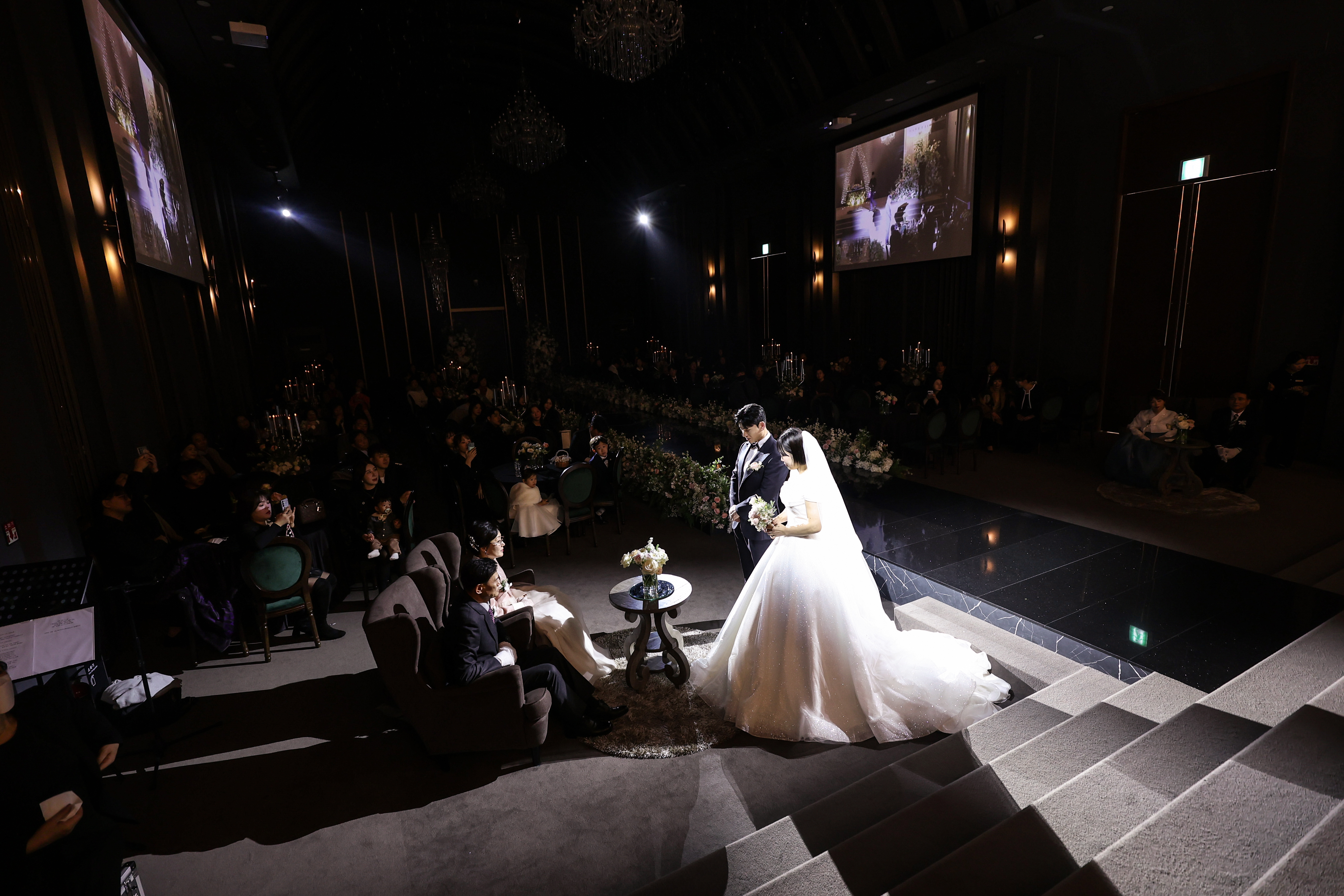 홀에 들어서는 순간 느껴지는 웅장함과 안정적인 구조 덕분에 예식 자체가 굉장히 단정하고 클래식한 느낌이었어요. 화려하다기보다는, 공간이 주는 무게감이 분명한 홀이라 예식의 흐름을 방해하지 않는 기록이 중요하겠다고 느꼈어요.